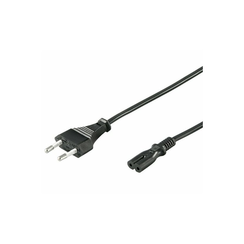 Napájací kábel v čiernom prevedení pre napájací adaptér. Dvojžilový kábel je zakončený koncom v podobe ležatej osmičky.